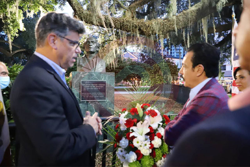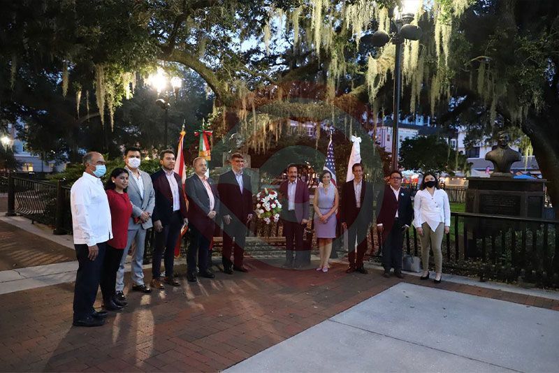 Finalmente, en el Parque Eola, sitio emblemático de Orlando y espacio de encuentro de migrantes mexicanos, el gobernador Omar Fayad depositó una ofrenda floral en el busto de Miguel Hidalgo y Costilla, Padre de la Patria y de quien la entidad lleva el nombre.