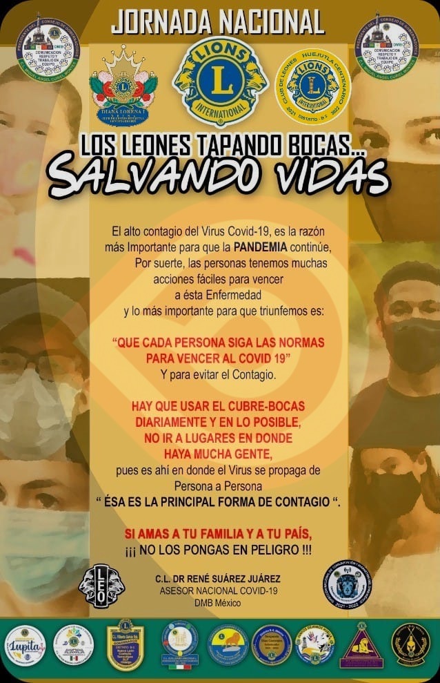 Insistió “si amas a tu familia y a tu país, no los pongas en peligro; La jornada nacional Los Leones tapando bocas, salvando vidas se llevará a cabo los días 28 y 29 de agosto, en esta ciudad de Huejutla se contempla realizarla en la zona centro y lugares aledaños”.