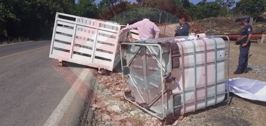 Cuando la unidad tomó la pronunciada curva que se encuentra en la entrada principal al CERESO de Tamazunchale, se desprendió repentinamente la plataforma trasera proyectando sobre el pavimento a cuatro trabajadores que viajaban en la parte trasera de la unidad.