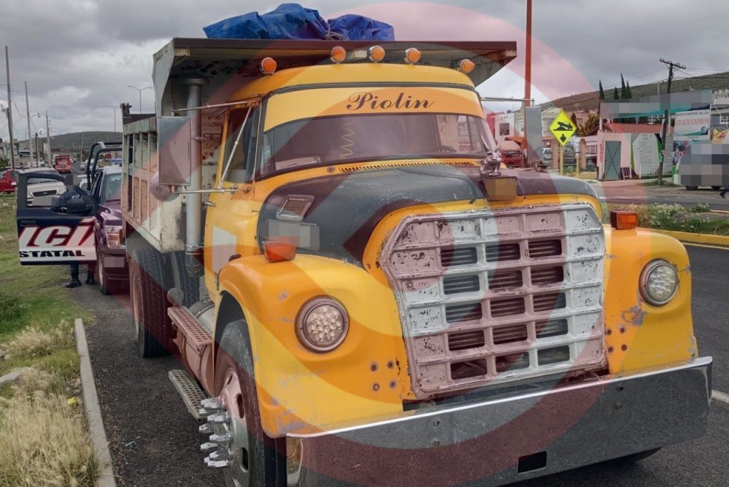 El aseguramiento de la unidad marca Dina, tipo volteo, color amarillo, con placas de Hidalgo, se llevó a cabo en la carretera Pachuca-Tulancingo, en la comunidad de Amaque, por agentes adscritos a la Unidad Especializada de Policía Canina de la Agencia de Seguridad Estatal.