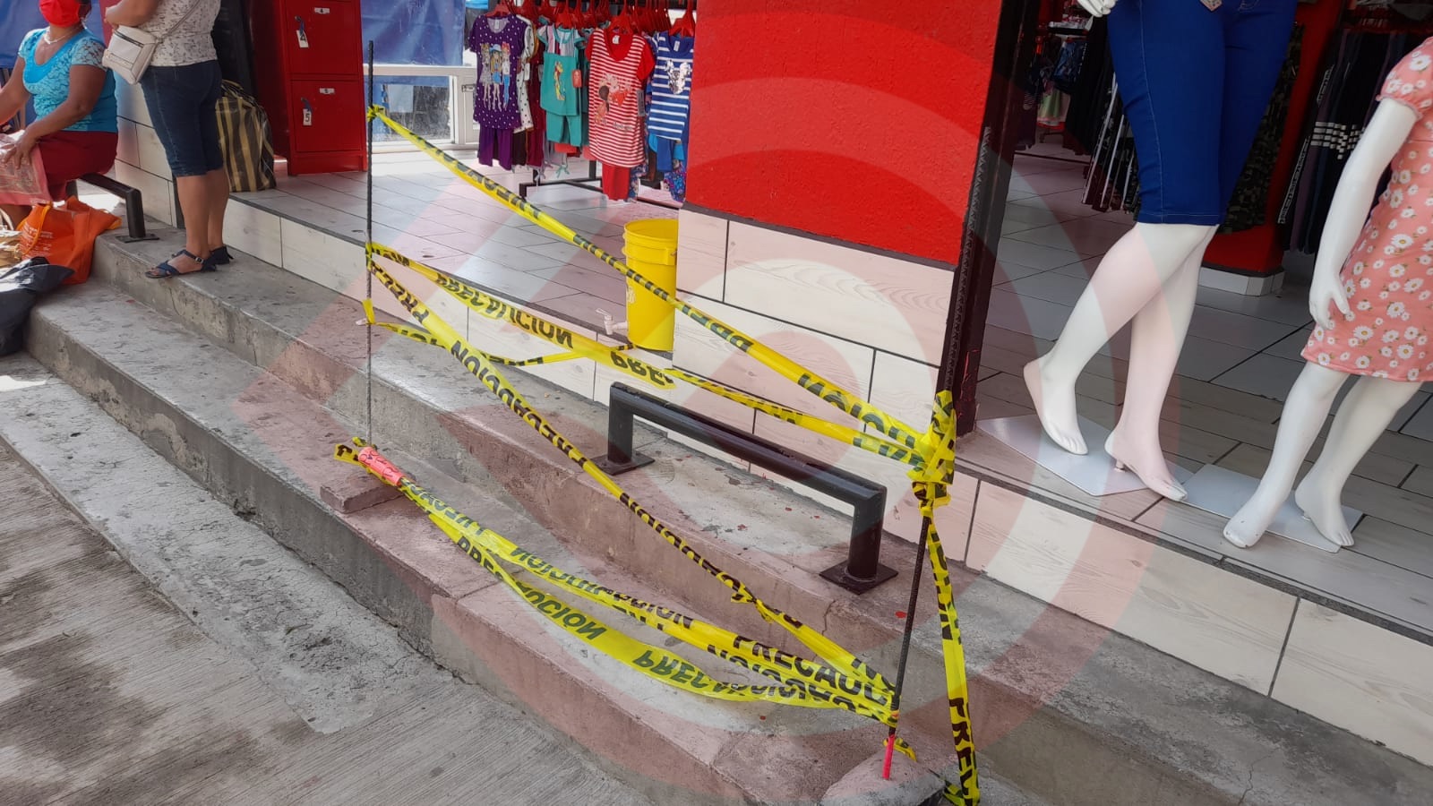 Huejutla, Hgo.- Propietarios de comercios establecidos en la avenida Nuevo León, se protegen de la invasión de banquetas por parte de vendedores ambulantes, quienes incluso, se ubican en las gradas de los establecimientos obstruyendo el ingreso de clientes.