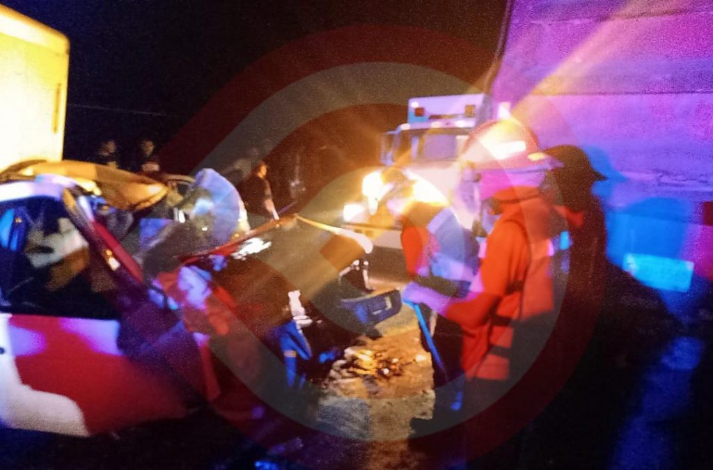 Atlapexco, Hgo.- Gravemente herido resultó el conductor de una camioneta quien fue auxiliado y trasladado a un nosocomio tras estrellarse contra un tráiler que se encontraba descompuesto en la carretera sin sus luces preventivas.