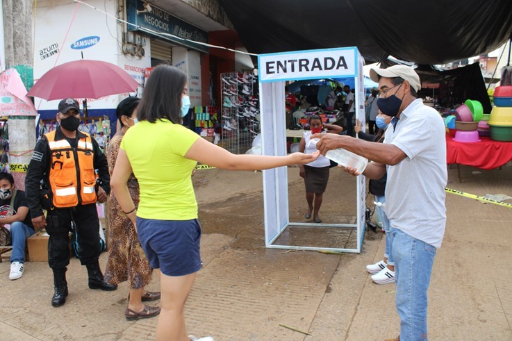Cabe mencionar, la respuesta favorable de la población en general y muy especialmente de los comerciantes, quienes asumieron responsablemente las indicaciones de la presidencia municipal, en el sentido de tener disponible para los clientes gel antibacterial y uso del cubrebocas permanentemente.