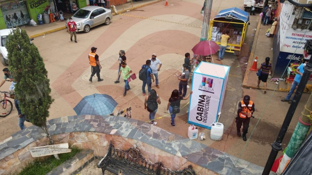 Huautla, Hgo. – Durante el domingo anterior, el gobierno municipal que encabeza Felipe Juárez Ramírez dispuso la instalación de dos filtros desinfectantes para que, comerciantes y clientes, pudieran ingresar al tianguis acatando las disposiciones de las Secretarías de Salud federal y estatal, en el marco de prevención de casos de Covid-19.