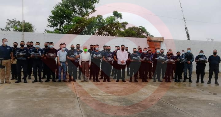 En el acto acompañaron al presidente municipal, el secretario del ayuntamiento Yocundo Pérez Herrera, el director de Seguridad Pública Municipal Hugo Alberto Sanjuán Nochebuena, el tesorero Moisés Coronel, entre otros funcionarios locales. El ayuntamiento aplicó una importante derrama de recursos para bien de los agentes.