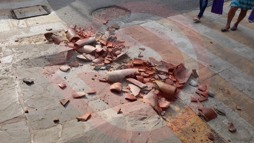 Es oportuno destacar, que al lugar acudió personal de Protección Civil Municipal para retirar de la vía pública los fragmentos de teja, los cuales estaban esparcidos sobre el paso peatonal.