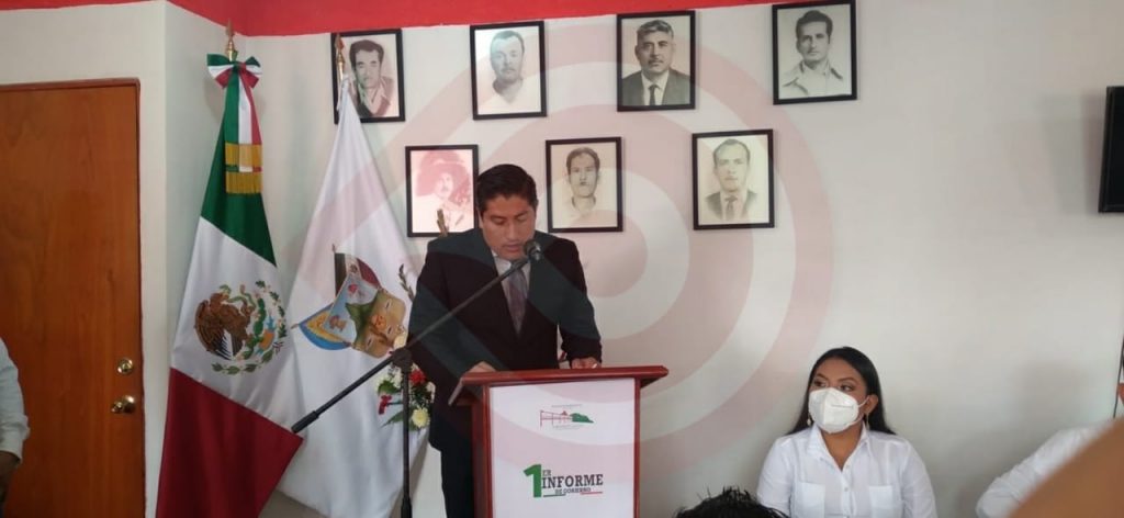 Huazalingo, Hgo. – Con las medidas preventivas contra el covid-19, el presidente municipal licenciado Julio César González García, rindió su primer informe de gobierno municipal, en la mesa del presídium se contó con la presencia de los integrantes de la honorable asamblea municipal, José Luis Guevara Muñoz, Secretario de Movilidad y Transporte del estado en representación del gobernador del Estado Omar Fayad.