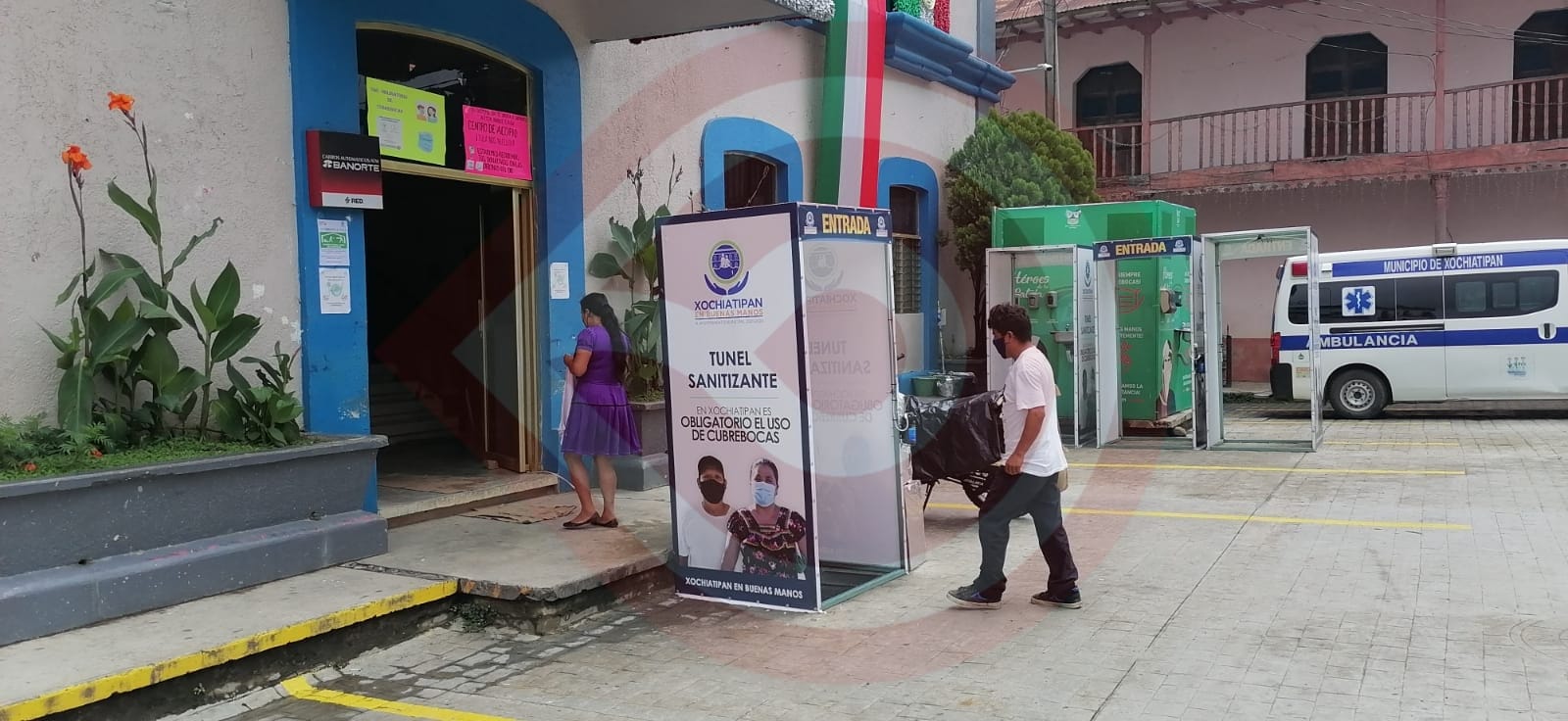 De igual manera, este tipo de arcos se colocan los miércoles en los accesos al Tianguis comercial, y de manera permanente, en la puerta principal de la presidencia municipal donde se provee de gel antibacterial a todas las personas y se les exige usar correctamente el cubrebocas.