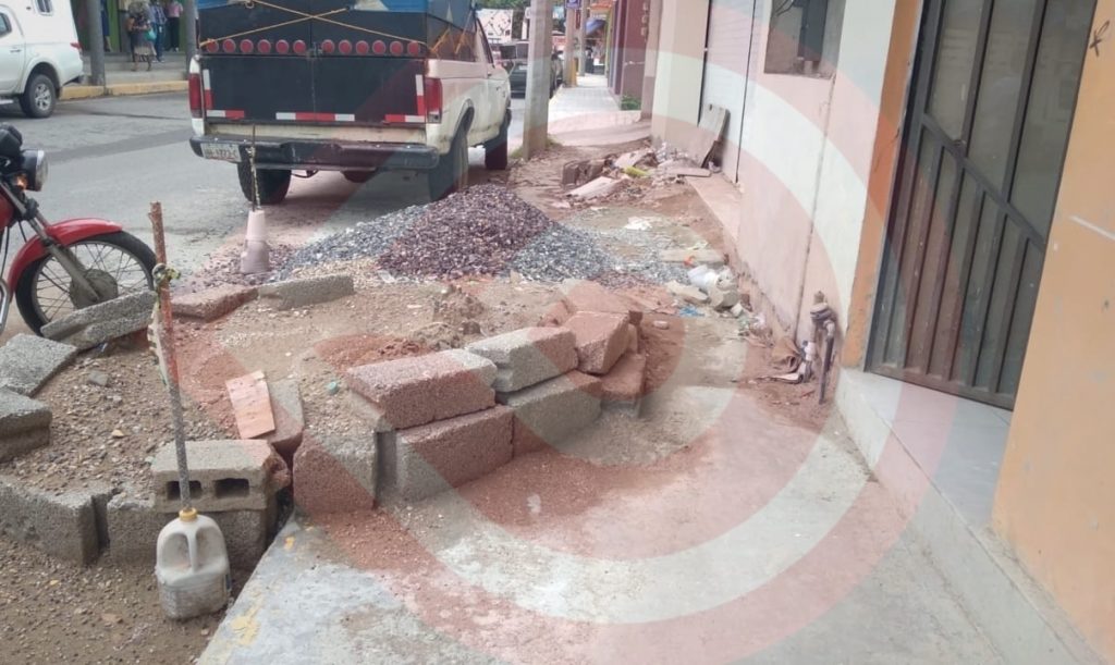 Material y escombro sigue obstruyendo el paso en banqueta