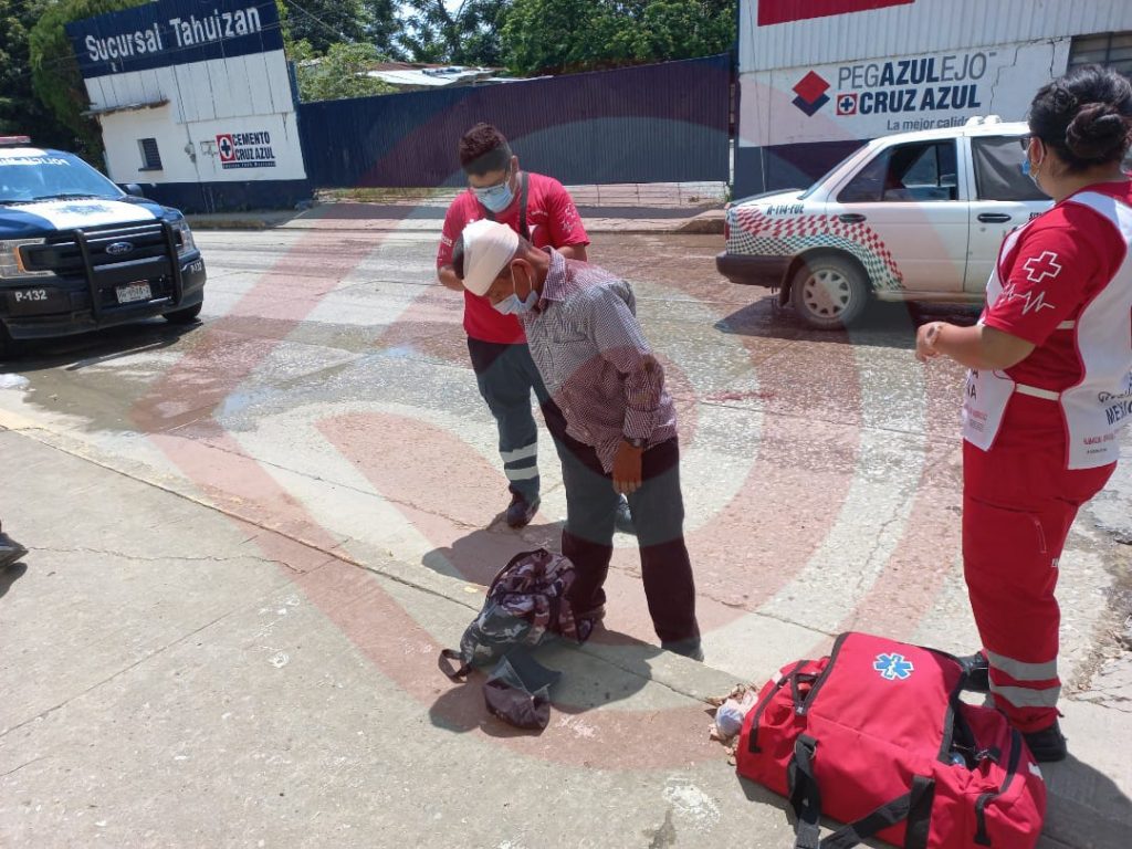 Huejutla, Hgo.- Hombre de edad avanzada quien viajaba en la parte trasera de una camioneta pasajera, en estado de ebriedad, resultó herido al haber caído de la unidad.