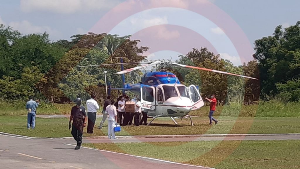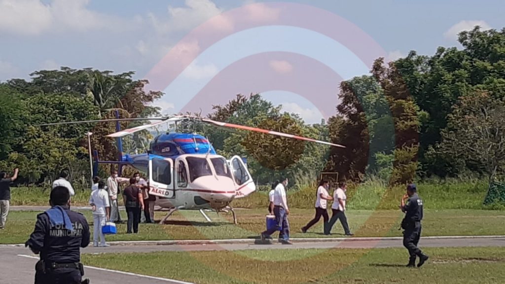 Huejutla, Hgo.- En helicóptero del gobierno del estado que arribó la tarde de este lunes, al helipuerto de la Unidad de Servicios Estatales (USE) de esta ciudad, llegaron un total 2 mil 300 vacunas anticovid, que se aplicarán a los habitantes de los municipios de Atlapexco y Xochiatipan.