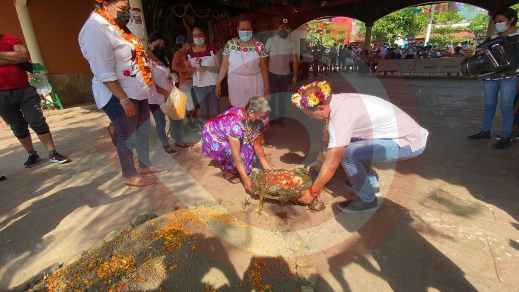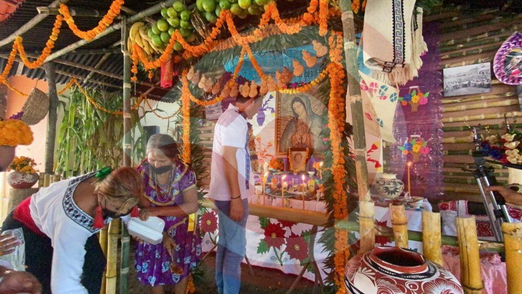 Según la tradición, este día Mitlantecuhtli y Mictecacihuatl, reyes del inframundo, abren las puertas del Mictlán para que por un momento puedan regresar al Yoliztli (el mundo de los vivos) y estar con sus seres queridos, para esto el alcalde Julián Nochebuena acompañado de su esposa Marisol del Río fueron partícipes de ello, donde una señora de la comunidad les realizo el ritual de una limpia, para posteriormente llevar el tapataxtle al altar y ofrendarlo.