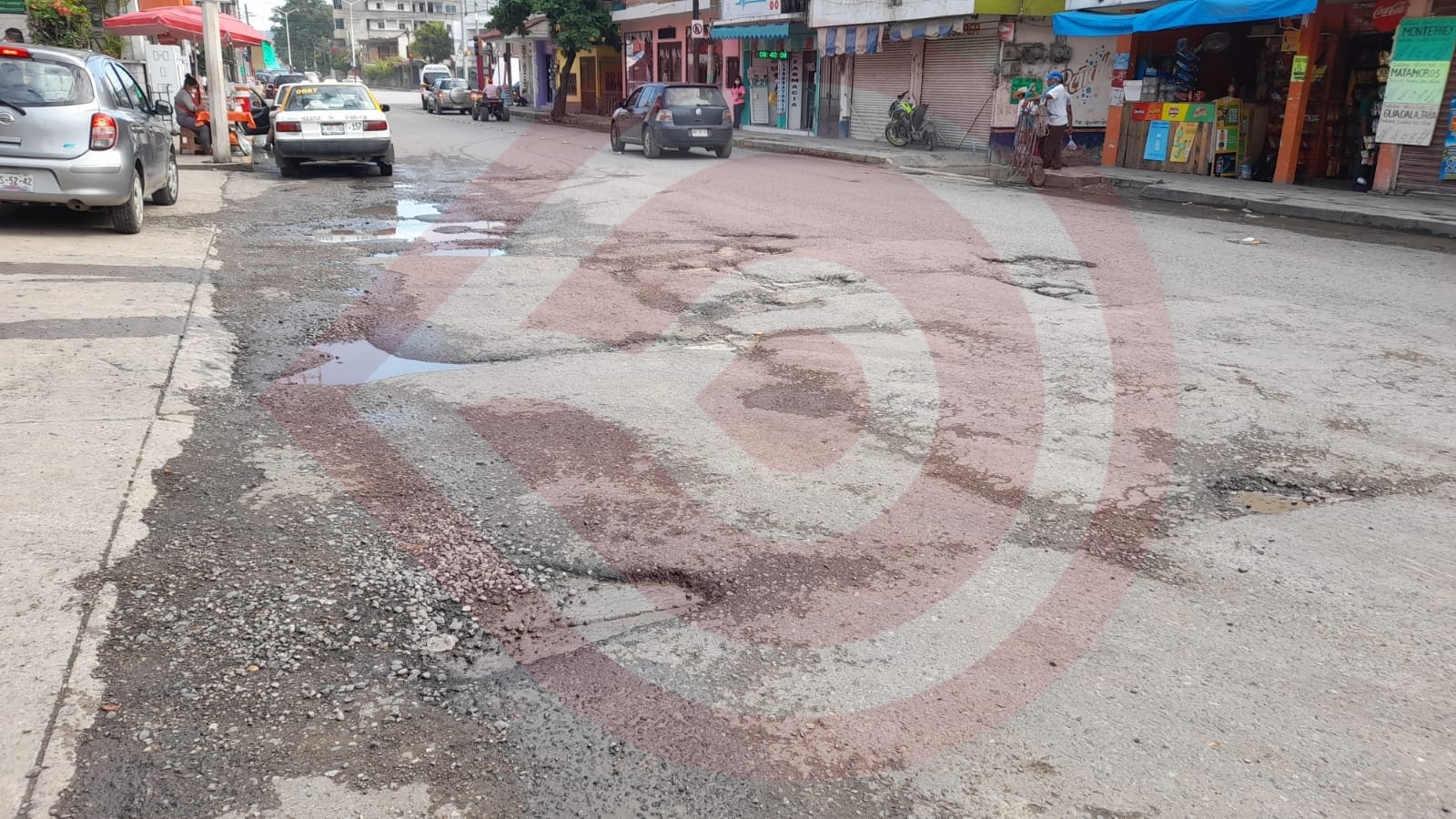 Especificaron que el deterioro del pavimento, está concretamente enfrente de la terminal de autobuses foráneos, en el espacio de entrada y salida de las unidades, y donde ellos al arribar el autobús se estacionan para “agarrar pasaje” con las personas que arriban en ese momento a la población.