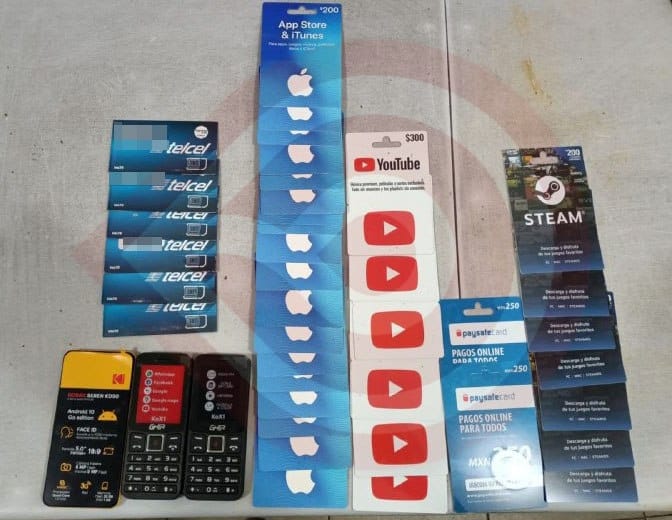 A la persona le localizaron un envoltorio con la probable droga, así como teléfonos celulares, chips telefónicos y varias tarjetas para aplicaciones de videojuegos y plataformas de streaming.