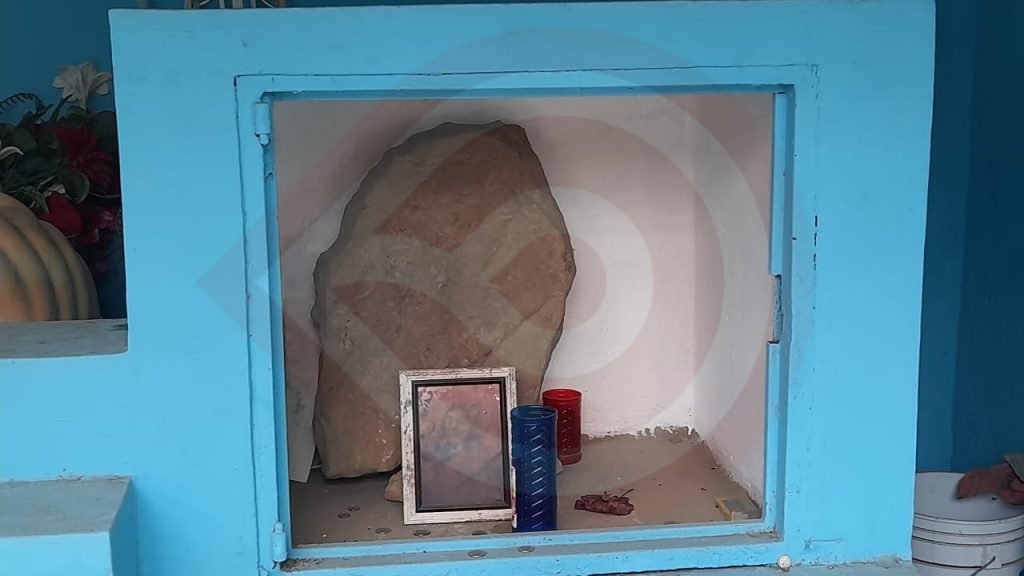Para finalizar, comentó que fueron a avisar a sus padres y unos vecinos bajaron la piedra a mecapal, de la cual dijeron, no obstante que era de considerables proporciones no pesaba, por lo que señalaron que era una aparición celestial, y se le construyó su capilla con dinero que la gente que acudía a venerable dejaba, pero con el transcurso del tiempo la imagen se fue borrando y la capilla paulatinamente abandonada.