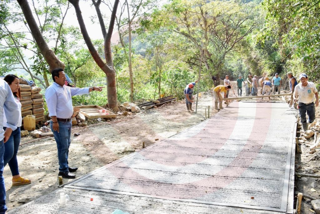 Xochiatipan, Hgo. – A fin de constatar que los trabajos se estén llevando de manera adecuada, el alcalde Oscar Bautista en compañía de personal de Obras públicas, realizó un recorrido por la construcción con pavimento hidráulico de acceso principal, en Xocotitla.
