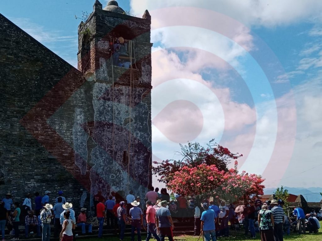 Al ritmo de la música de viento es como, después de varias horas, lograron cambiar todos los sostenes de las tres campanas, de la mayor que se usa para llamadas de las misas y emergencias del pueblo, la intermedia es la de rezos y avisos, y la campana chica que es para el toque de los difuntos.