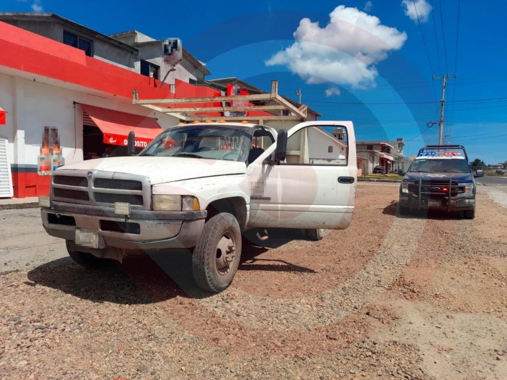 Oficiales avistaron el vehículo marca Dodge Ram, color blanco, con plataforma, en la carretera Tulancingo-Metepec, y con ello pudieron asegurar y recuperar la unidad a la altura del lugar conocido Las Hornillas.