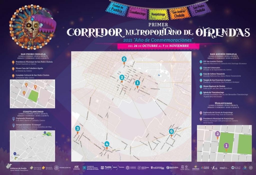 Sergio Vergara Berdejo, Secretario de Cultura del Gobierno de Puebla, comentó que el corredor busca reactivar la cultura, mediante una alianza estratégica entre el Estado y los municipios metropolitanos, con la colocación de ofrendas por la temporada de muertos.