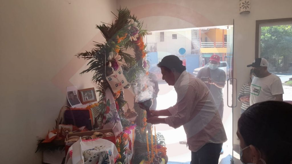 Coadyuvando en la preservación de la ancestral tradición, familiares y personal de la sede de la organización “Encuentro para el Desarrollo Social”, realizó la mañana de este sábado la primera ofrenda que consistió, en purificar con copal el ambiente para alejar a los malos espíritus, posteriormente los invitados ofrendaron tamales, chocolate y pan.