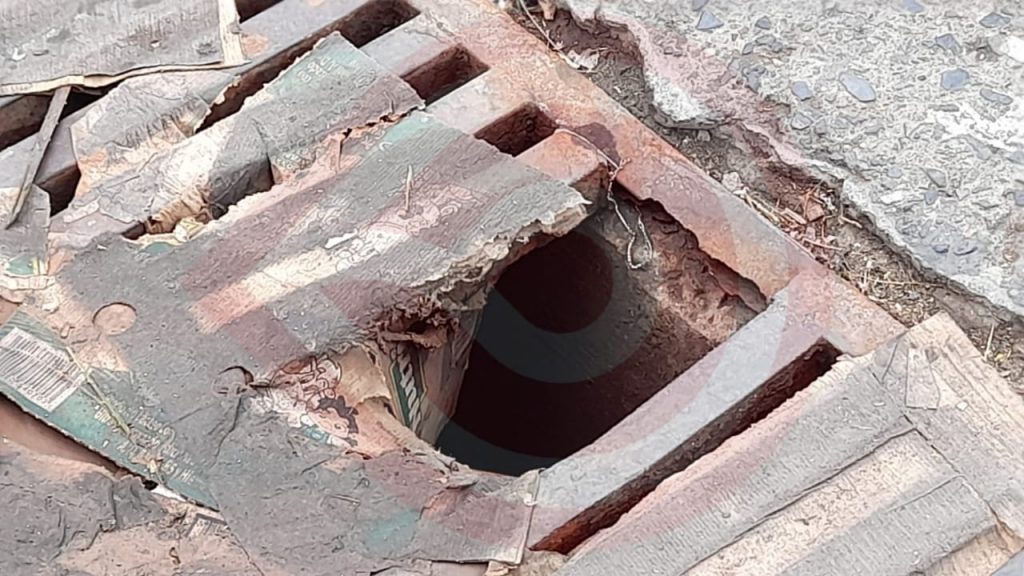 Agregaron que, conscientes de que hay tripulantes de motos alebrestados para conducir o distraídos, para cubrir la oquedad colocaron sobre la cubierta metálica un cartón grueso, pero con las lluvias se ha ido deshaciendo, dejando al descubierto el agujero.