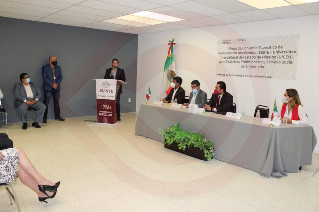 Pachuca de Soto, Hgo. – El Instituto de Seguridad y Servicios Sociales de los Trabajadores del Estado (ISSSTE) en Hidalgo; como institución prestadora de servicios de seguridad social, tiene la firme convicción de establecer vínculos de cooperación para el fortalecimiento de las acciones implementadas, en beneficio de las y los derechohabientes, a través de su Cuerpo Directivo, se celebró la firma de Convenio Académico de Colaboración con la Universidad Intercultural del Estado de Hidalgo para Prácticas Profesionales y Servicio Social de la Licenciatura en Enfermería.