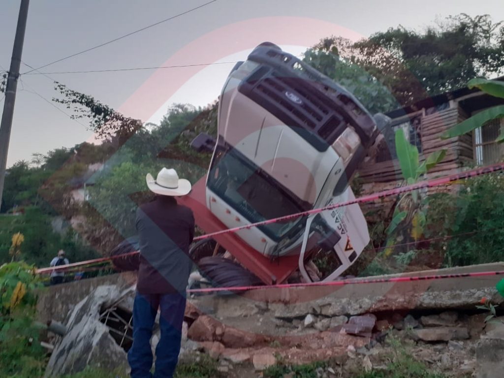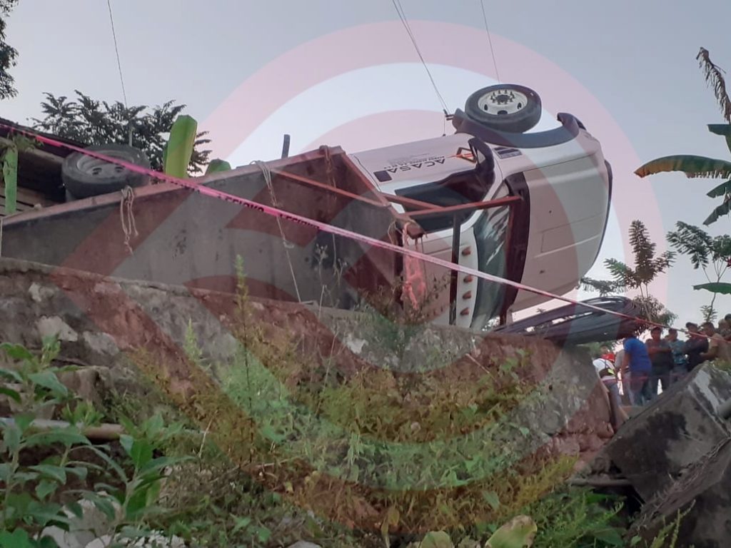 La unidad se dirigía a la localidad de Cuatolol, cuando el conductor perdió el control de la unidad al ganarle el peso del cemento y block, ocasionando que volcará en las inmediaciones de la iglesia de la localidad.