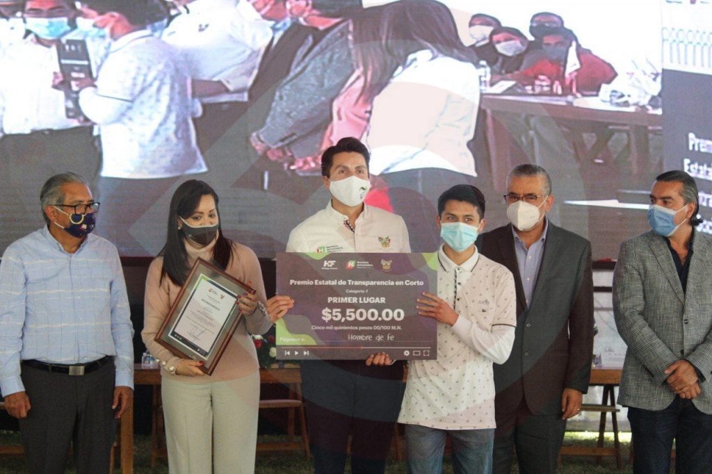 En este acto también se llevó a cabo la entrega de reconocimientos a los ganadores de Transparencia en Corto, del cual resultaron ganadores de la primera categoría de 15 a 18 años: 1º lugar “Hombre de Fe” de Dante Zair Ortega Rosales del CECYTEH, plantel Mineral de la Reforma, 2º lugar “La Ruta” de Mariana Flores Castillo del Centro Estatal de Maquinaria (CEMD y 3º lugar “Monopoli” de Fernanda Avendaño Gaytán del Municipio de Tula de Allende