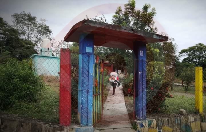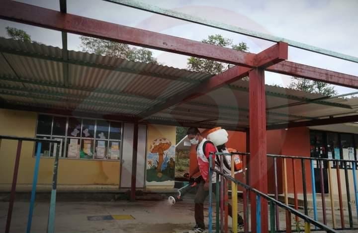 En esta ocasión colaboradores del área de Protección Civil municipal acudieron a la escuela primaria y al Centro de Educación Inicial de Itzocal; así como al preescolar y primaria de Palo Gordo y por último, se presentaron en la Telesecundaria 794 de San Isidro; donde aplicaron productos desinfectantes mediante el uso de bombas aspersoras.