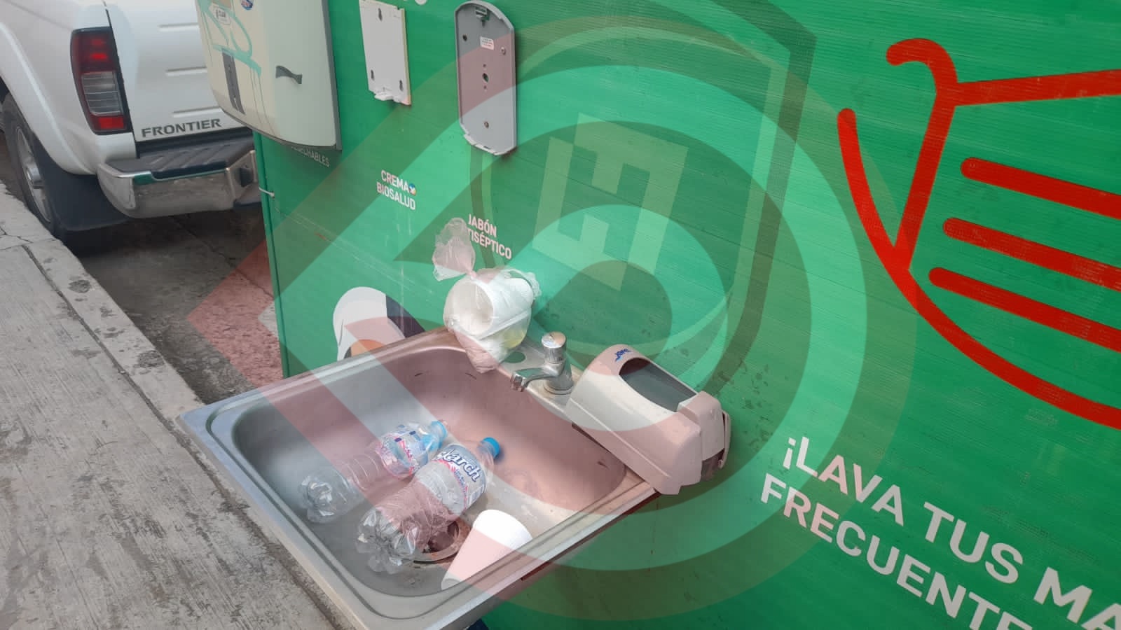 Asimismo, empiezan a deteriorarla, ya que le han desprendido uno de los dispositivos que contenía líquido desinfectante, lo cual sin duda -refirieron vecinos del sector- fue una travesura ya que lo dejaron sobre la palangana.
