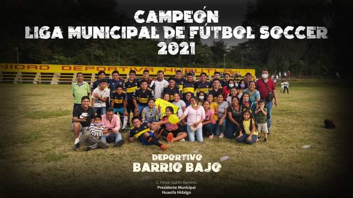 Huautla, Hgo. – El gobierno municipal que encabeza Felipe Juárez Ramírez, felicitó al Deportivo Barrio Bajo por haber logrado convertirse en el Campeón de la Liga Municipal de Fútbol Soccer 2021, de esta localidad.