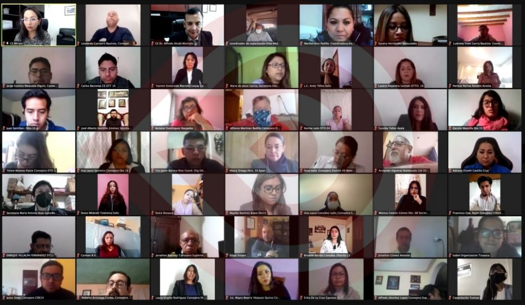 Pachuca de Soto, Hgo. – El Instituto Estatal Electoral de Hidalgo (IEEH) realizó el primer Encuentro Virtual de las y los recién nombrados integrantes de los 18 Consejos Distritales con el objetivo específico de que desarrollen conocimientos previos para el correcto cumplimiento de sus funciones en las actividades relacionadas a la instalación de los Consejos Distritales Electorales, así como de dar cumplimiento a las actividades aprobadas en el Calendario Electoral para el Proceso Electoral Local Ordinario 2021-2022.