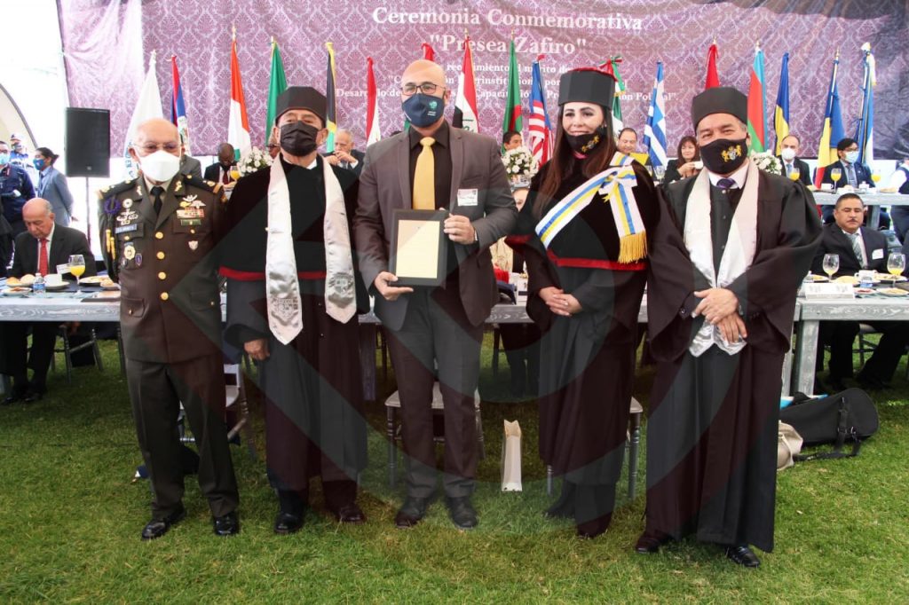 Pachuca de Soto, Hgo. – En reconocimiento a la labor en favor de la comunidad académica policial en México, Alberto Hidalgo Montes, director general del Instituto de Formación Profesional de la Secretaría de Seguridad Pública de Hidalgo, recibió la Presea Zafiro, que otorgan la Facultad Latinoamericana UNIPOL y el Instituto de Certificación Internacional en Materia de Seguridad.