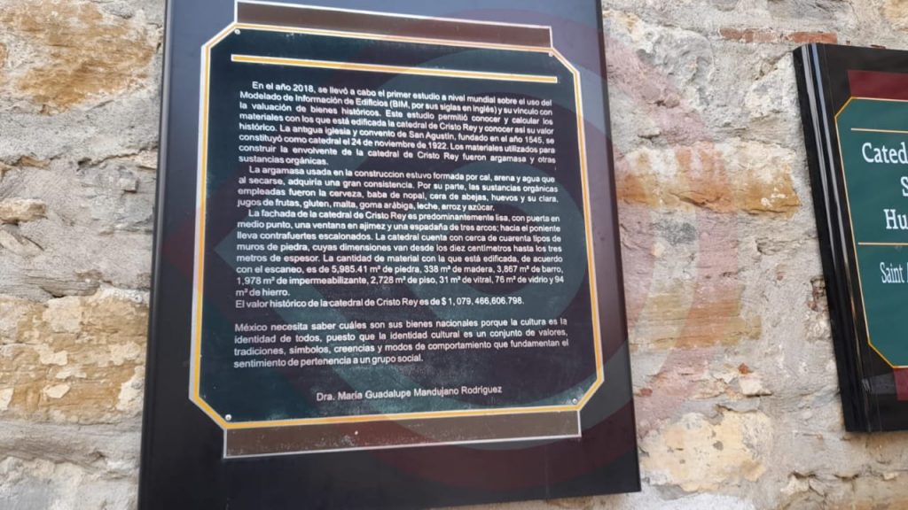 Agregó “lo que causa gran admiración son las sustancias orgánicas, ya que se empleó cerveza; baba de nopal; cera de abejas; clara de huevo; jugo de frutas; gluten; malta; goma arábiga; leche; arroz y azúcar, con lo cual se creó una resistencia granítica”.