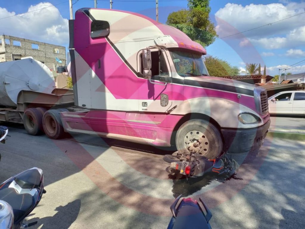 Huejutla, Hgo.- Paramédicos del cuerpo de bomberos auxiliaron al conductor de una motocicleta, luego que resultara herido tras impactarse contra una camioneta y un tráiler.