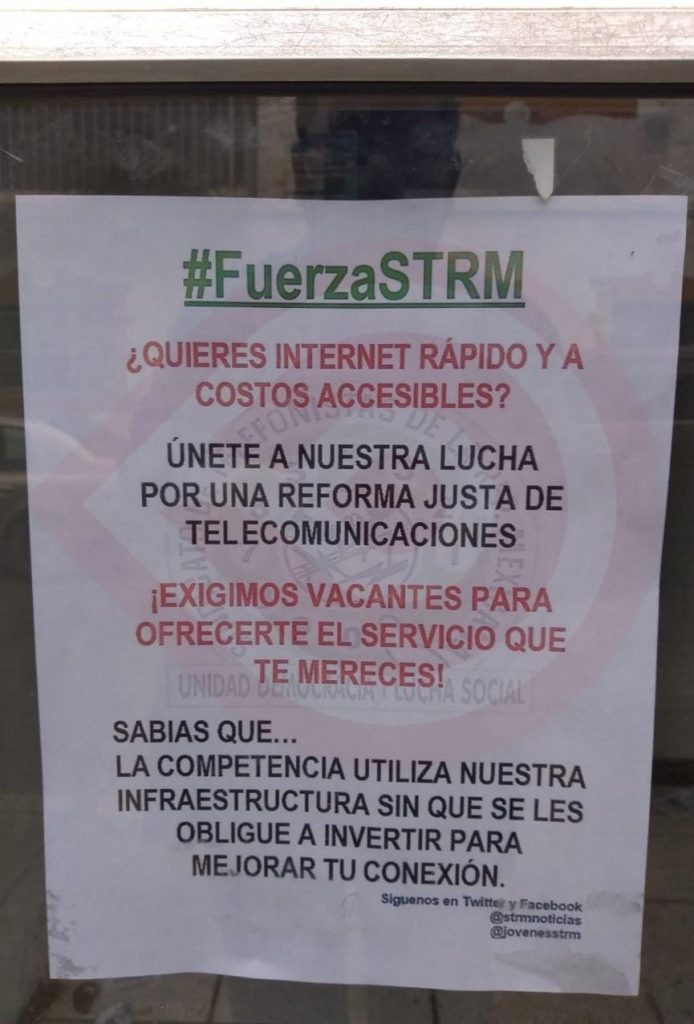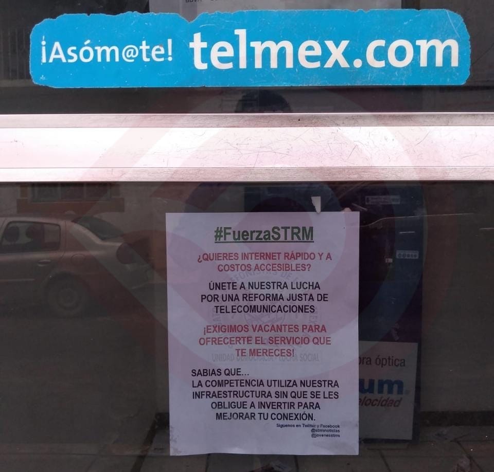 Personal de Telmex trabaja bajo protesta