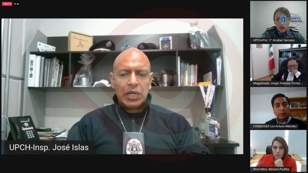 La mesa virtual de expertos en la materia estuvo integrada por: inspector José Islas Martínez, titular de la Policía Cibernética de Hidalgo; magistrado Jorge Antonio Torres Regnier, en representación del Tribunal Superior de Justicia de Hidalgo; Miriam Padilla Espinosa, directora de Seguridad de Datos Personales del Sector Privado del INAI; y Arturo Méndez Corona, jefe del Departamento de Compilación y Registro de Información Estadística de la CONDUSEF.