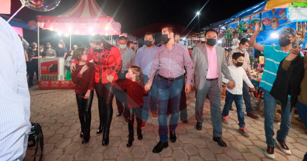 Huejutla, Hgo.- La tarde noche de este viernes, el alcalde Daniel Andrade Zurutuza acompañado de su distinguida esposa Carol Guadalupe Lara Flores e invitados, inauguró la tradicional Feria de Nochebuena en su edición 2021.