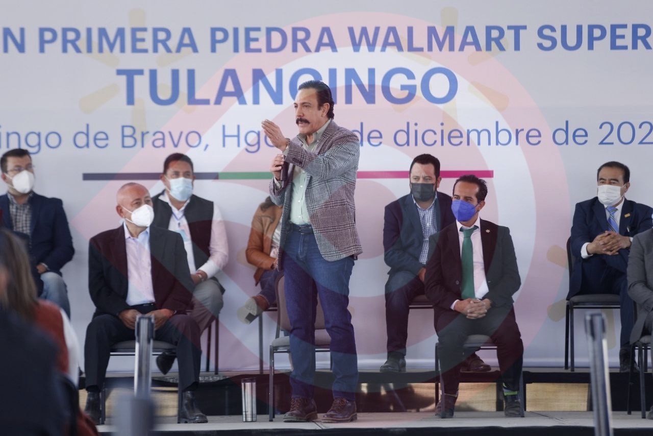 Posteriormente, en Tula, el mandatario estatal también colocó la primera piedra del Walmart Supercenter de esta ciudad.