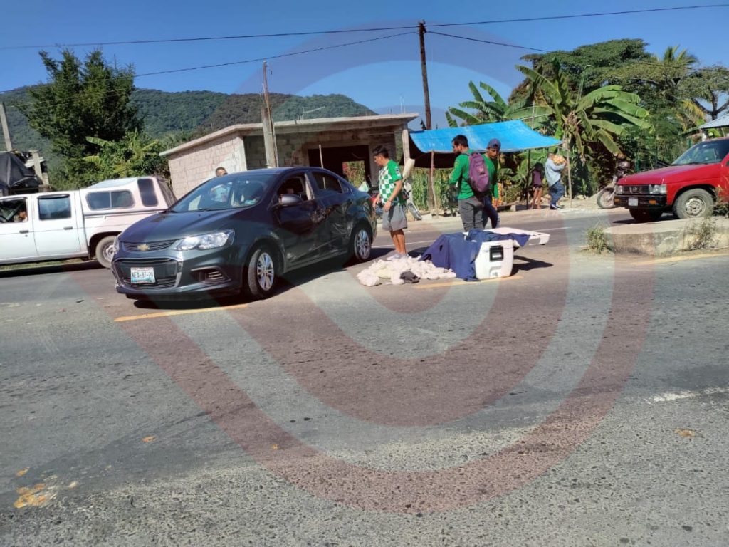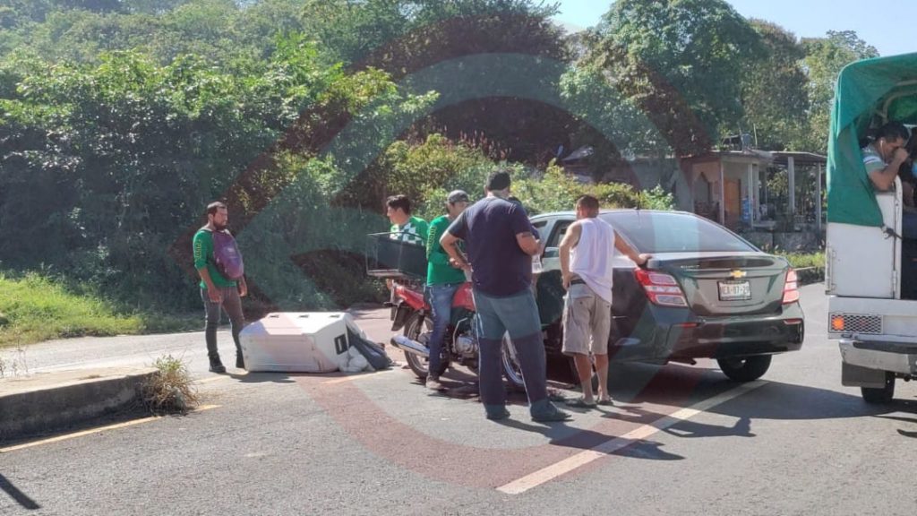 Huejutla, Hgo. – Una persona del sexo masculino, quien viajaba en una motocicleta al encontrarse vendiendo tortillas, sufrió un fuerte accidente tras estrellarse contra un automóvil particular.