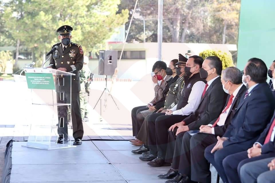 La Ceremonia fue presidida por el General de Brigada Diplomado de Estado Mayor Bernabé Bernardo Chávez Lira, Comandante de la 18/a. Zona Militar, asistió el Lic. Simón Vargas Aguilar, Secretario de Gobierno del Estado de Hidalgo y el Dr. Alejandro Efraín Benítez Herrera, Secretario de Salud, además de otros funcionarios de la Salud en el Estado de Hidalgo.