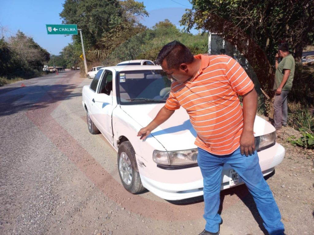 Chalma, Ver.- Aparatoso accidente se registró luego que dos vehículos particulares que presuntamente circulaban a exceso de velocidad y sin precaución terminaran impactándose.