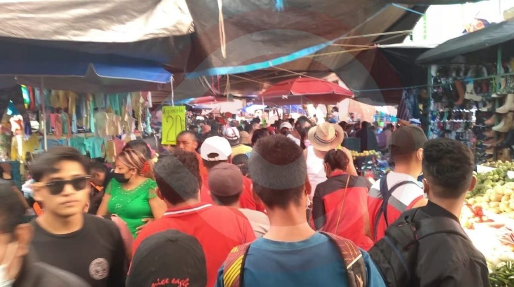 Huejutla, Hgo. – Desde muy temprano de este viernes 31 de diciembre, cientos de personas abarrotaron el tianguis, sin respetar la sana distancia y muchos no portaban el cubrebocas.