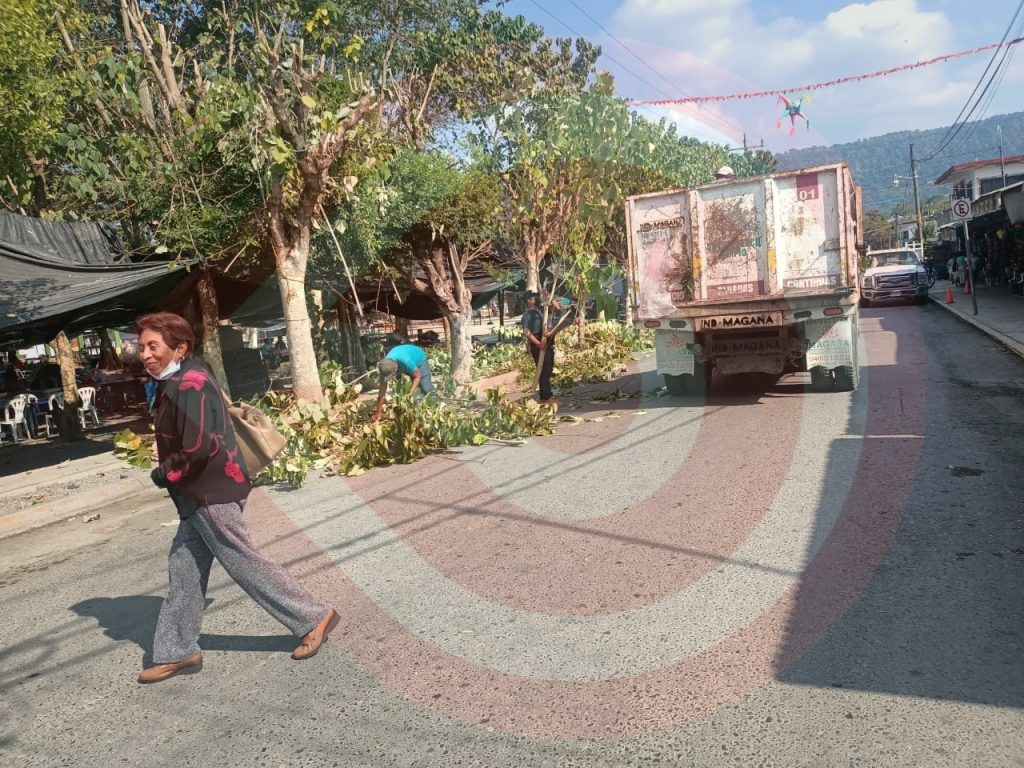 Atlapexco, Hgo.- El día de hoy por la tarde se efectuaron trabajos por parte de la Comisión Federal de Electricidad (CFE) en el mercado Municipal, a un costado de la base de taxis de la cabecera municipal, en donde en ejercicio de sus facultades y atribuciones y con el equipo técnico, llevaron a cabo el desrame de varios árboles, de los cuales sus ramas habían crecido demasiado, hasta el grado de poner en peligro a la población que comercializa y transita en la zona , pues estas ya se encontraban muy cerca de pegar con los cables de alta tensión.