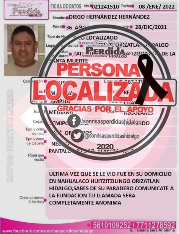 Por Redacción/Zunoticia San Felipe Orizatlan, Hgo.- Una persona del sexo masculino que era buscado por su familia, luego que presuntamente saliera de su domicilio y no regresara, finalmente fue hallado, desafortunadamente sin vida. Como se mencionó en la edición pasada los hechos ocurrieron desde el 28 de diciembre del 2021, cuando una persona del sexo… Seguir leyendo Localizan sin vida a vecino de San Felipe
