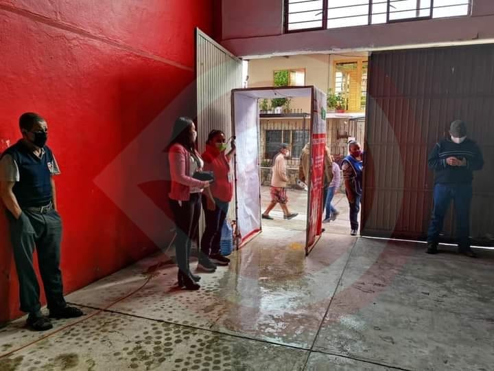 Huazalingo, Hgo. – Las áreas de Protección Civil y Asuntos Indígenas, están apoyando en el pago a los adultos mayores de este municipio, para ello los funcionarios de estos departamentos mantienen el arco desinfectante, en donde a las personas beneficiarias se les aplica la sanitización y de esta forma prevenir el covid-19.