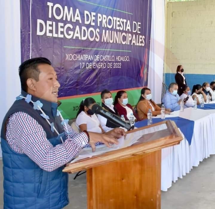 Xochiatipan, Hgo. – El edil Oscar Bautista tomó protesta a los 44 delegados del municipio, que corresponden 37 a las comunidades y 7 de los barrios de la cabecera, así como la entrega del bastón de mando a cada uno de ellos.