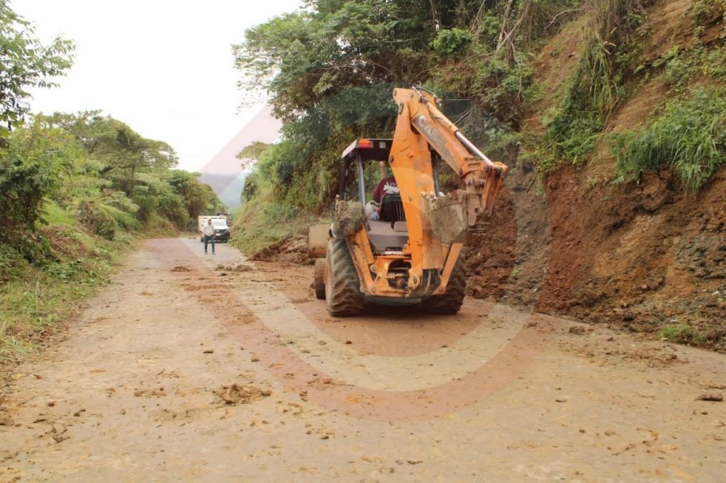 Con una retroexcavadora se realizó el retiro de tierra que obstruía el paso en la cinta asfáltica y cunetas; además los elementos de Protección Civil con la ayuda de una motosierra, hicieron el desrame de los árboles caídos que estorbaban a los automovilistas.