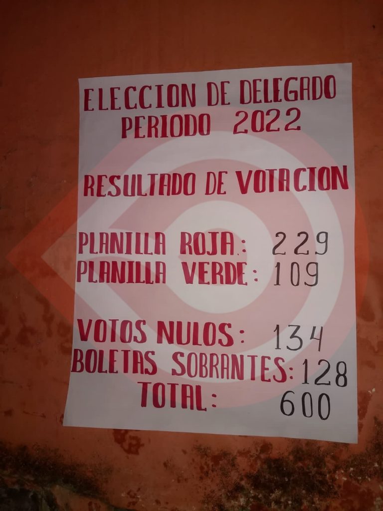 Mientras que el candidato perdedor fue el representante de la panilla verde, Noé García Medecigo, quien sólo obtuvo 109 votos y hubo un total de 134 votos nulos.