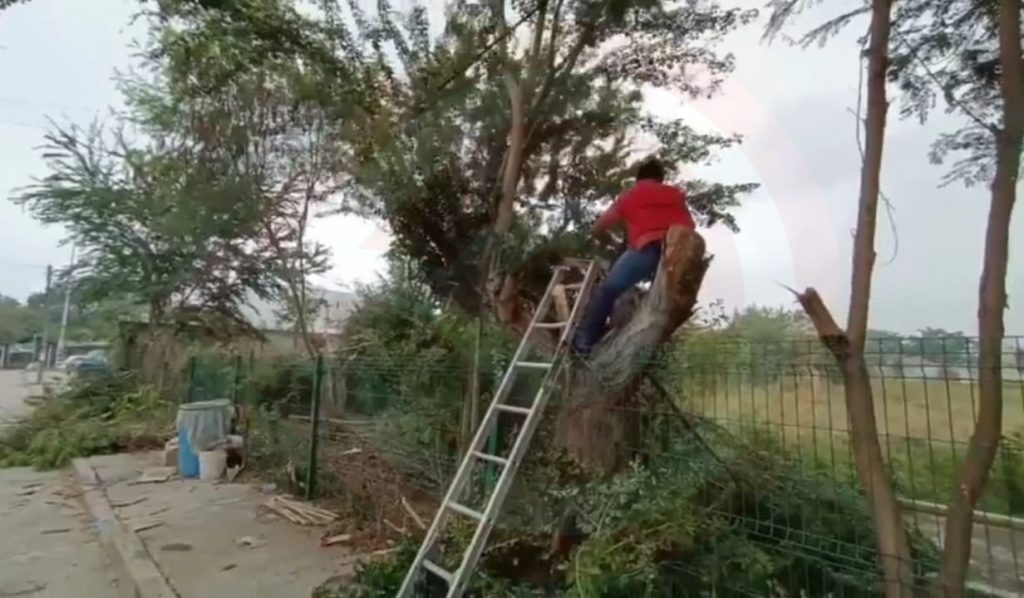 Huejutla, Hgo.- Personal de Protección Civil realizó desrame de árboles en las escuelas, áreas verdes y avenidas principales de la colonia Parque de Poblamiento Solidaridad de esta ciudad.